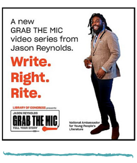 Welcome to the “Write. Right. Rite.,” a “GRAB THE MIC: Tell Your Story” video series! The “Write. Right. Rite.” is meant to be an entertaining and inventive way to engage with the National Ambassador for Young People’s Literature, Jason Reynolds.