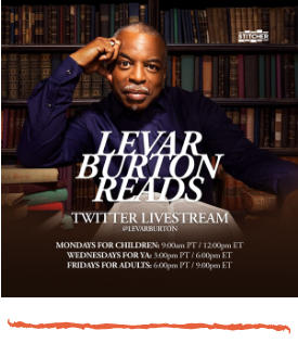 Beloved actor, author and literacy advocate LeVar Burton livestreams read-alouds for children on Twitter, Mondays at noon EST.